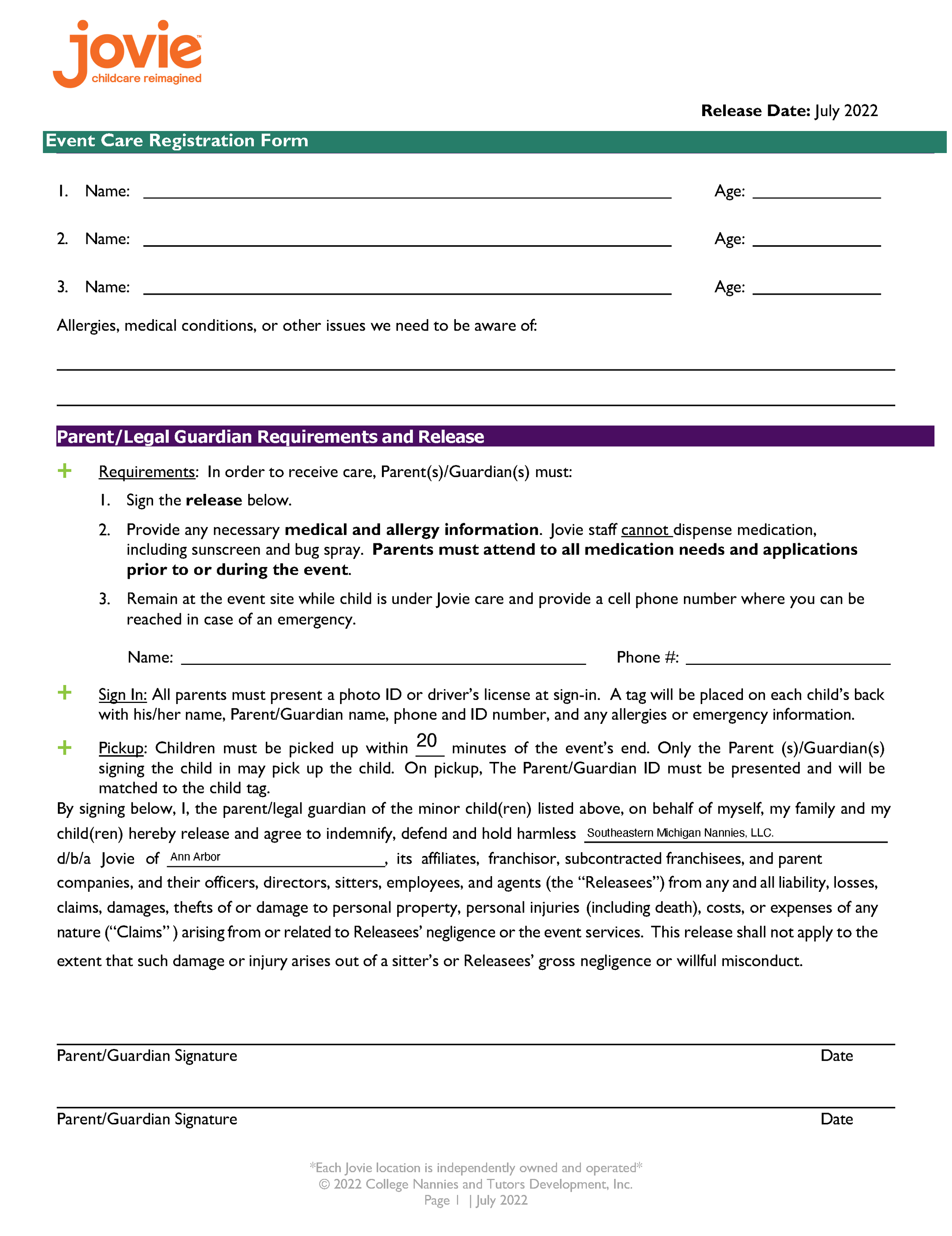 We are pleased to offer childcare for our youngest guests with Jovie during the ceremony. After the ceremony the kids’ space will continue to be available for any moment parents would like to be off-duty.